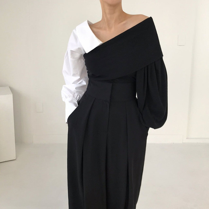 Bluza dama, cu maneca lunga, croi mulat si decolteu in V. Se evidentiaza prin manecile bufante si croiul pe jumatate camasa.