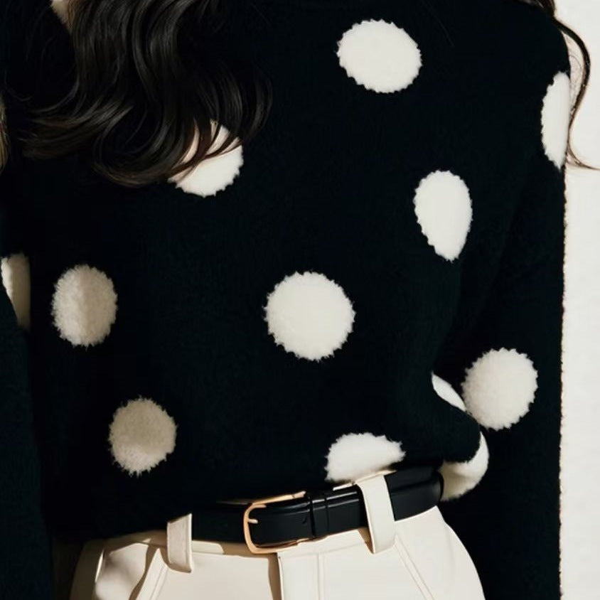 Bluza din tricot cu buline. Prezinta maneci lungi cu mansete reiate.