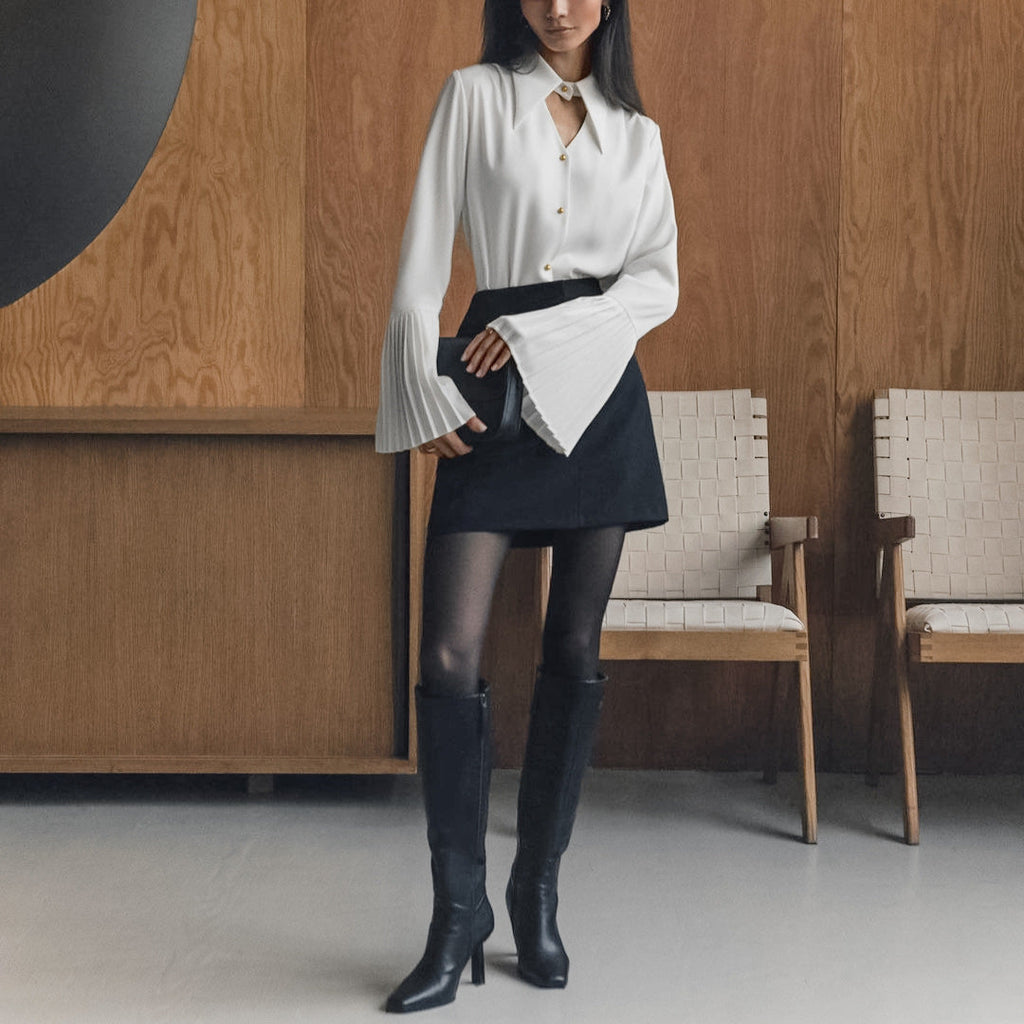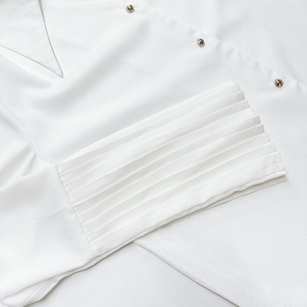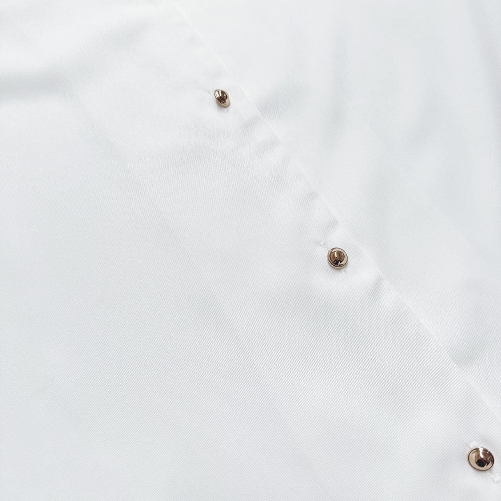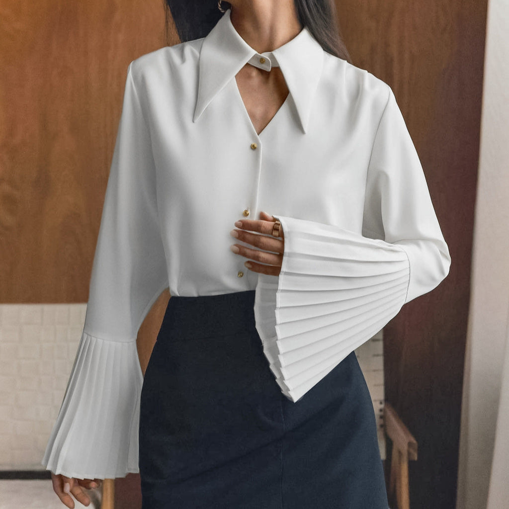 Camasa eleganta din material placut la atingere. Are un croi usor mulat, maneci lungi, cu mansete elasticec. Prezinta decolteu barcuta si inchidere prin nasturi.