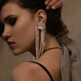 Cercei lungi cu ciucuri incrustati, strassuri si diamante