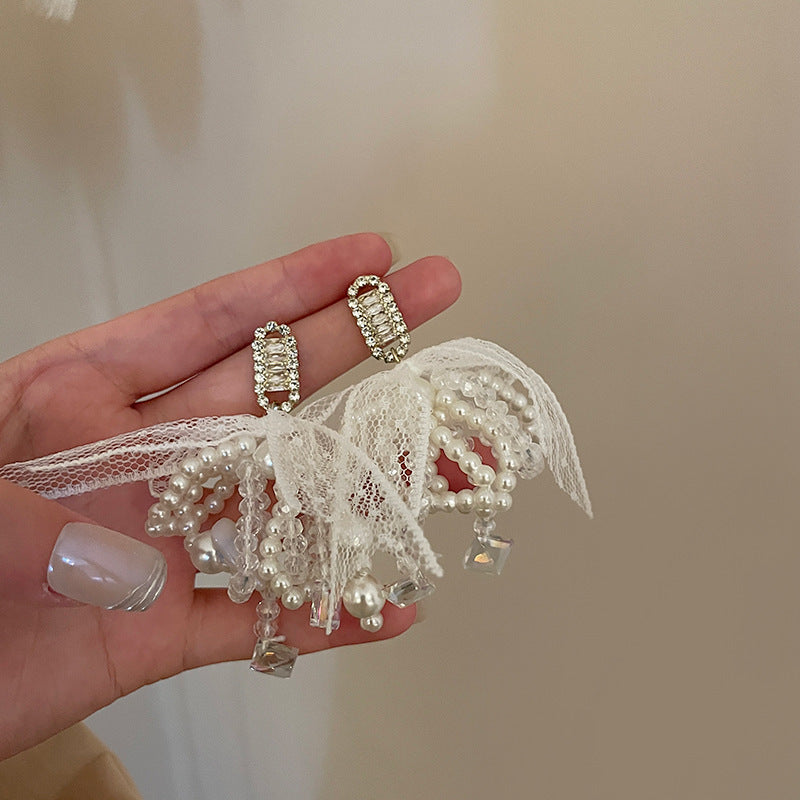 Cercei lungi cu perla si fundita si ace de argint S925