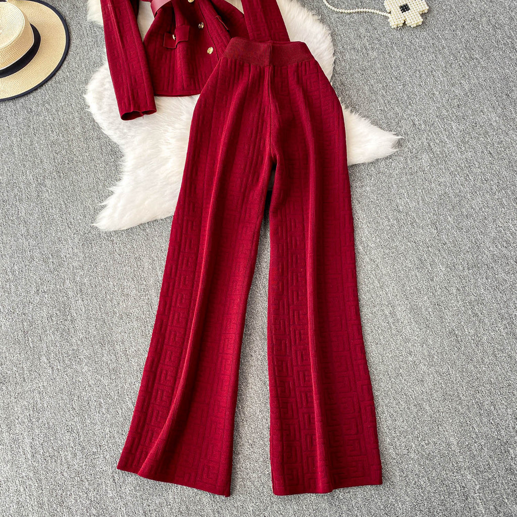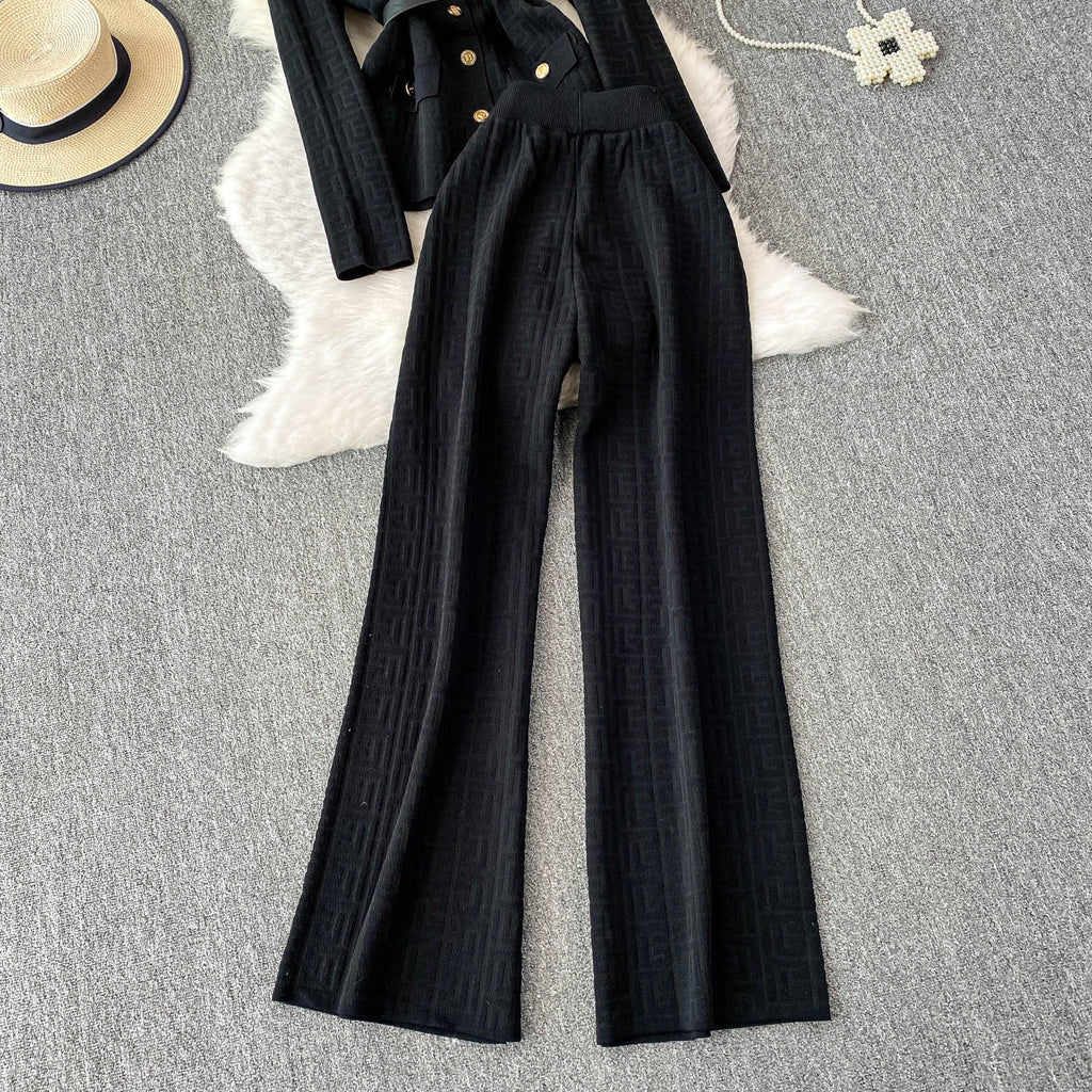 Pantalonii sunt usor evazati si prezinta croi lejer si talie elastica.