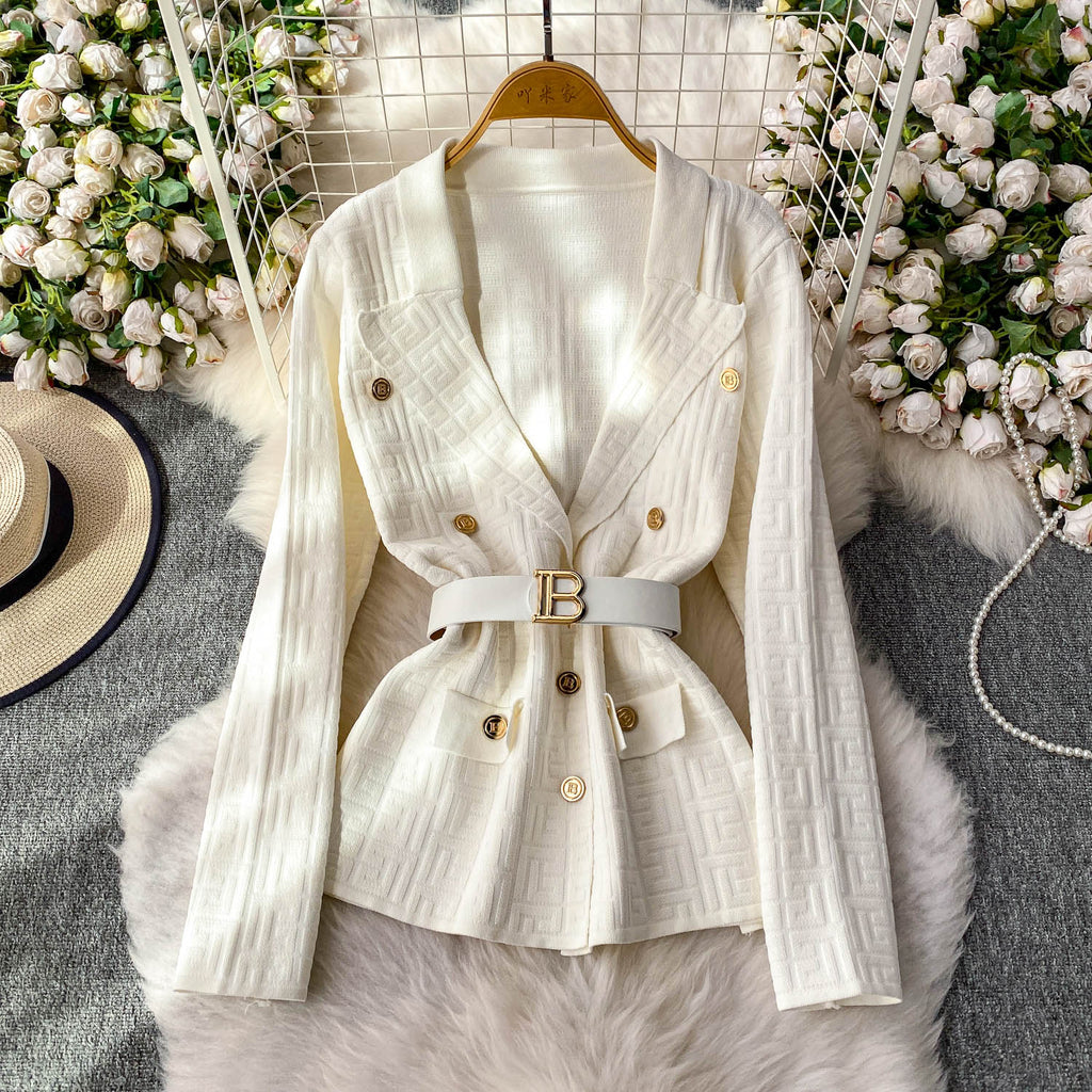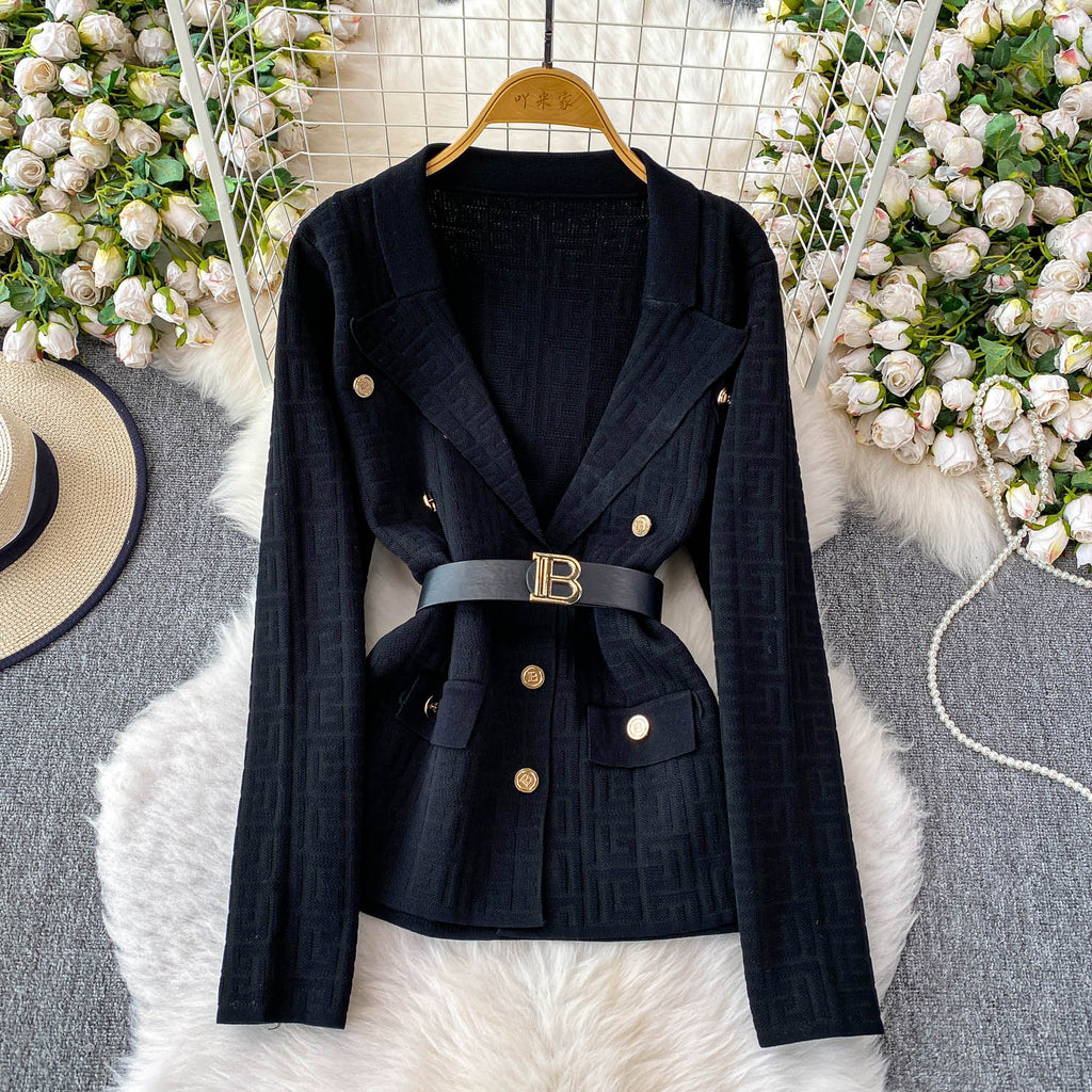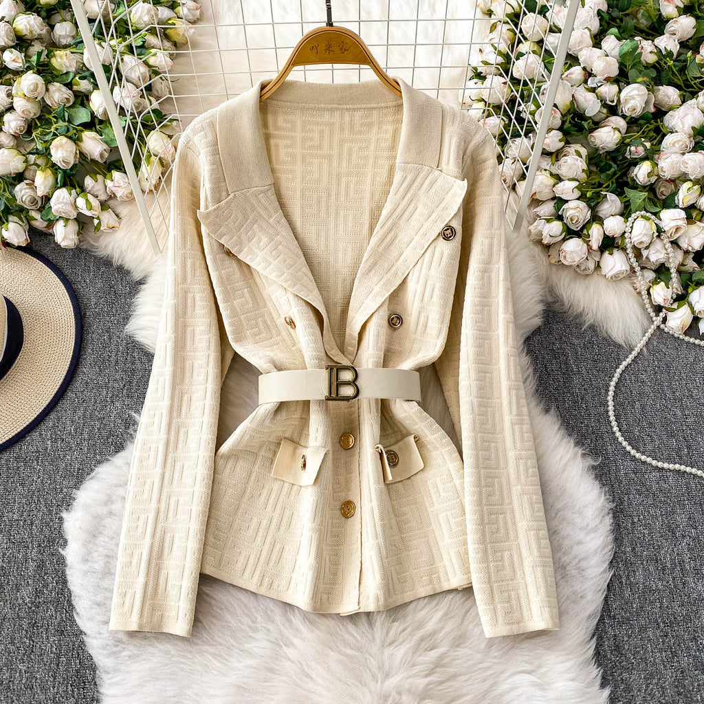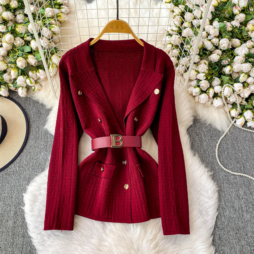 Jerseul prezinta cu maneci lungi si curea accesorizata in talie, cu textura.