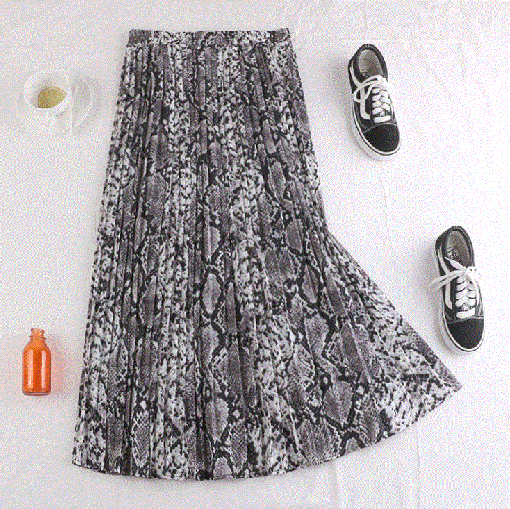 Fusta midi plisata, stil casual-chic cu croi lejer si elastic in talie. Imprimeu animal si captuseala.