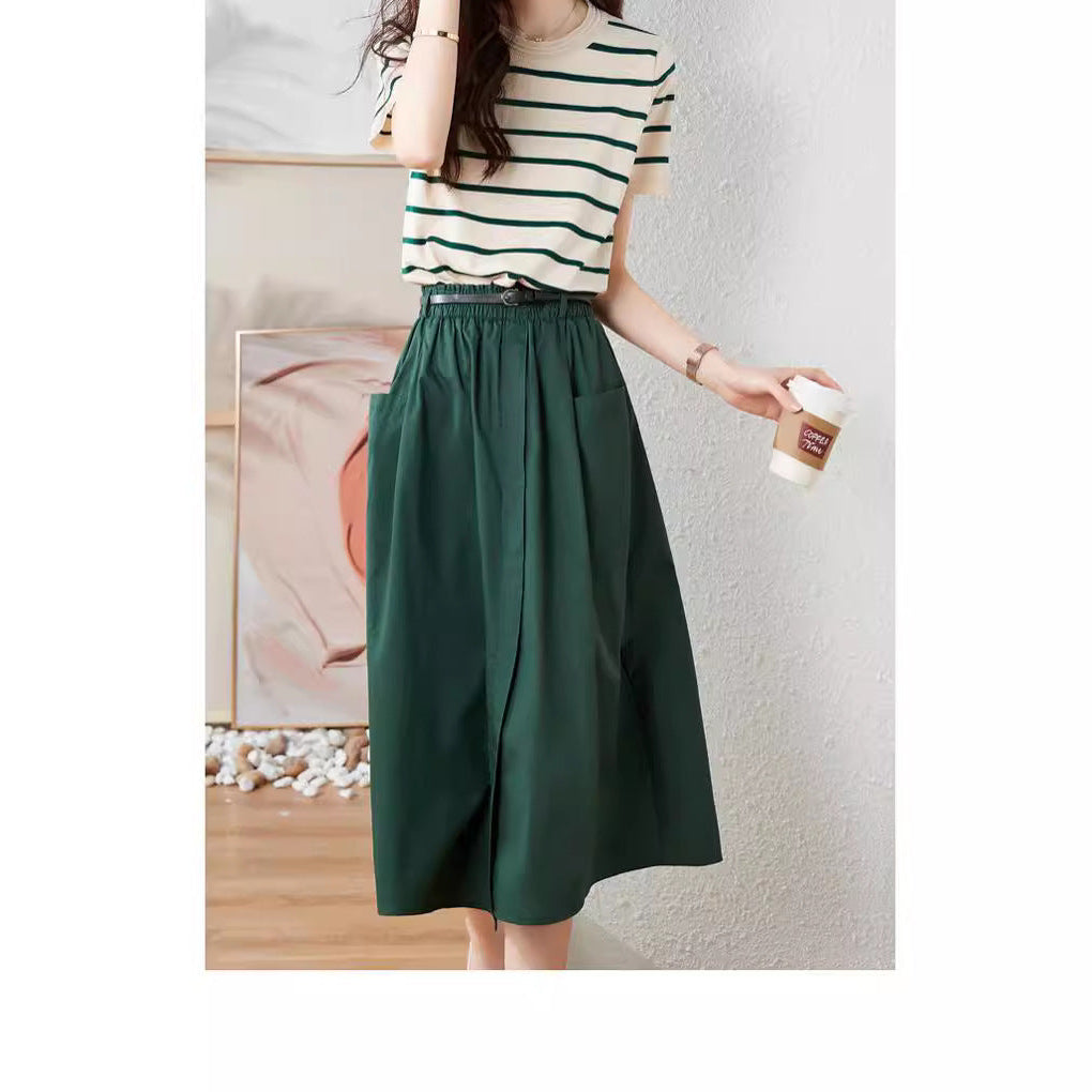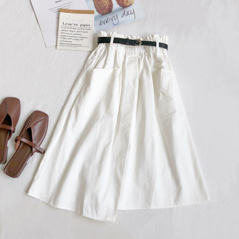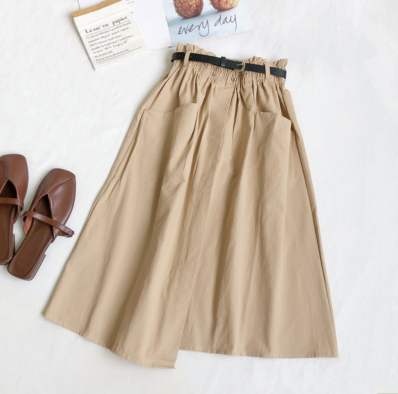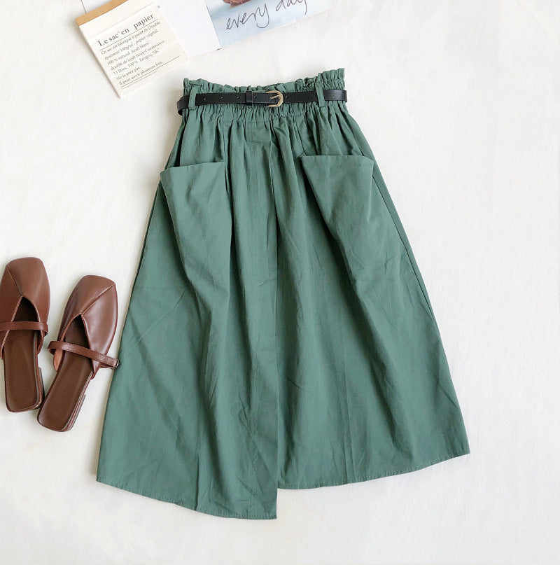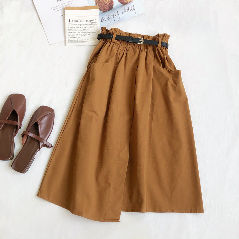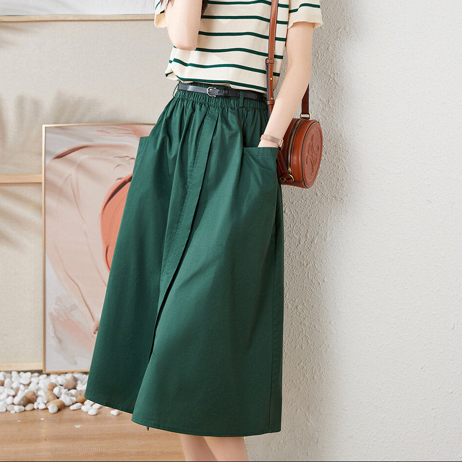 Fusta petrecuta tip A-line, cu croi lejer, comod. Are talie elastica, cu buzunare laterale si o crapatura scurta in fata.