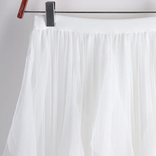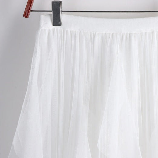 Fusta midi din tulle, in colturi, cu elastic in talie ce confera lejeritate. Are captuseala si se poate accesoriza la tenisi sport pentru o tinuta casual-chic, in trend.