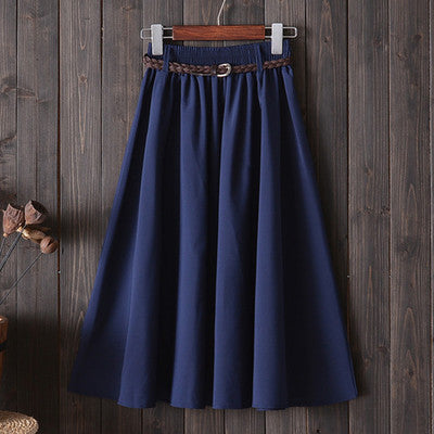 Fusta Belina bleumarin cu croi in A si curea impletita