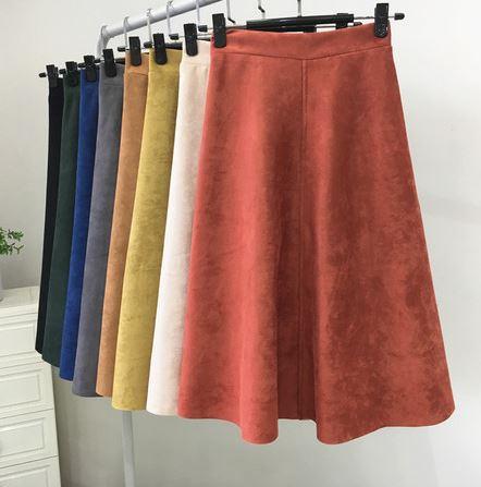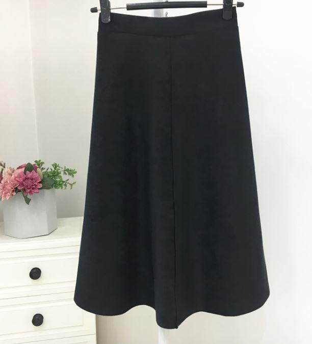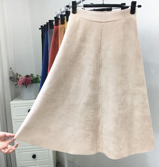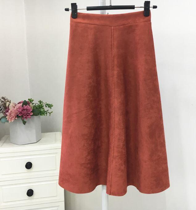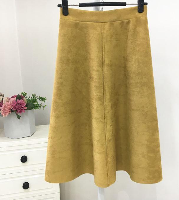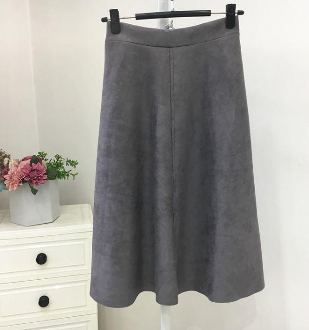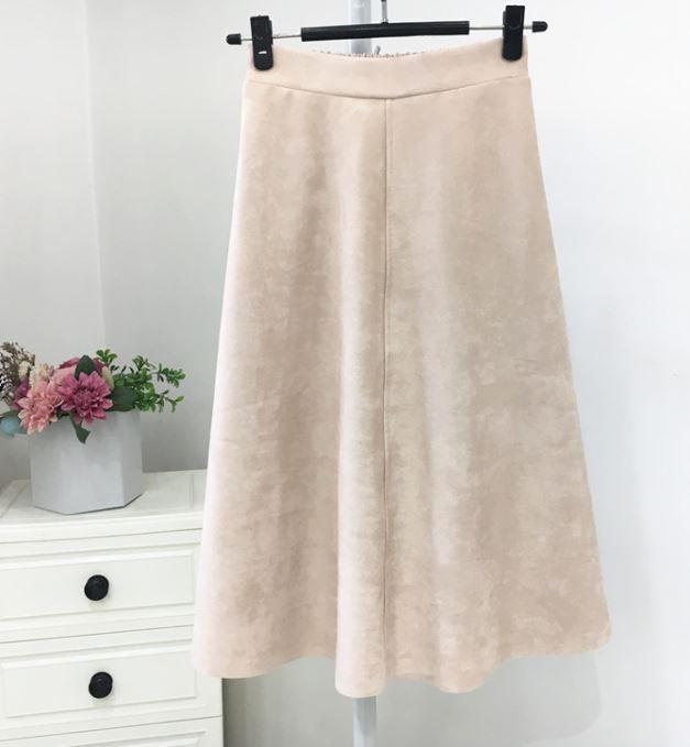 Fusta moderna, cu croi clos si lungime midi, confectionata din imitatie de piele intoarsa. Poate fi purtata cu pulovere si camasi.