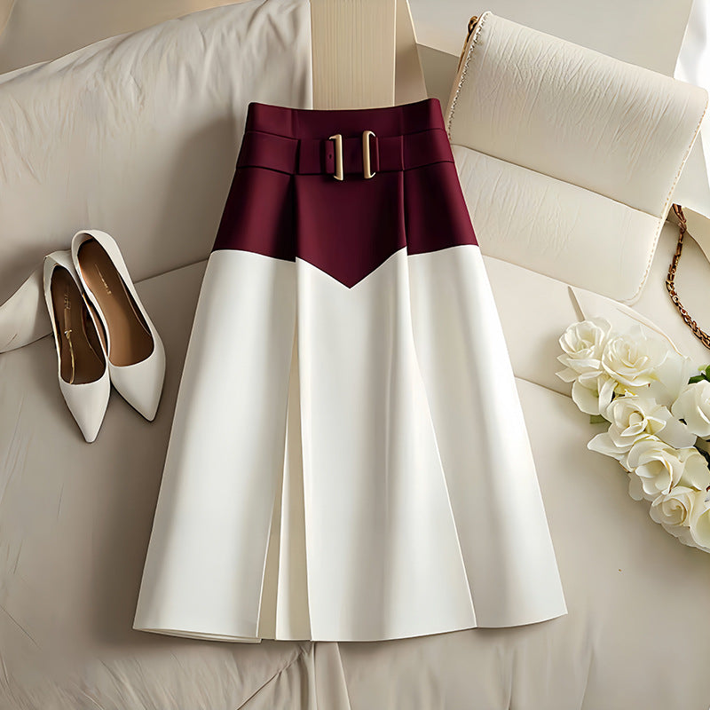 Fusta petrecuta tip A-line, cu croi lejer si pliuri lejere.