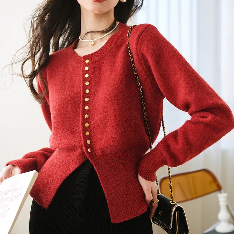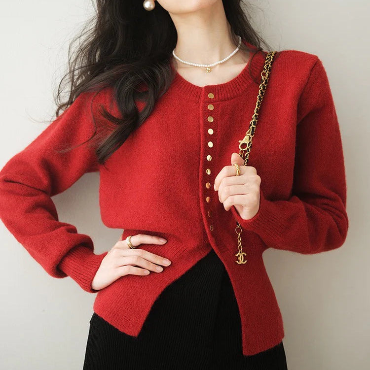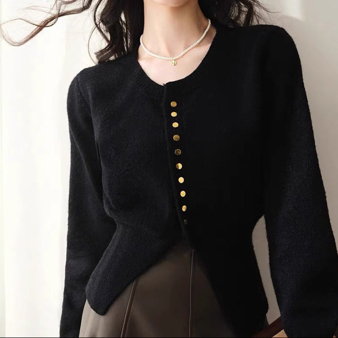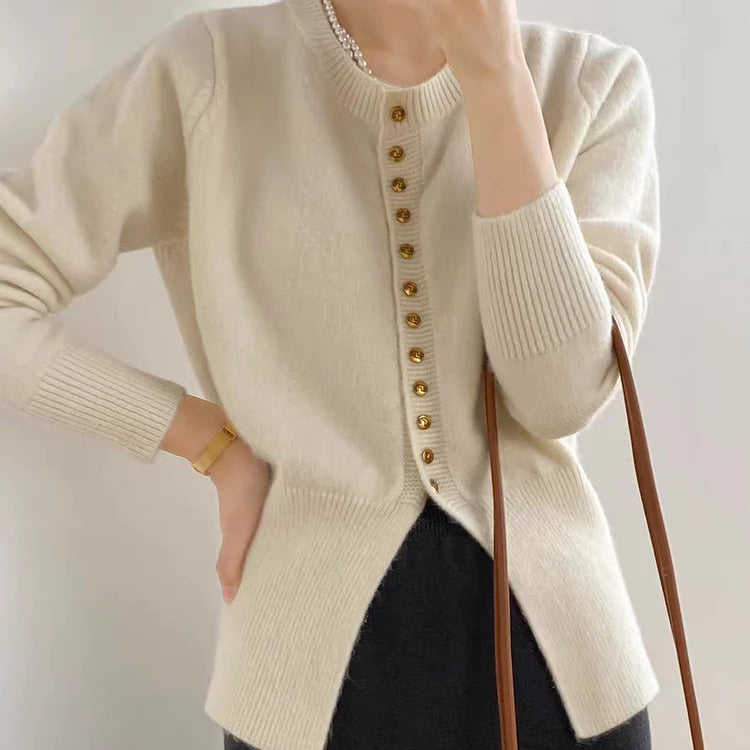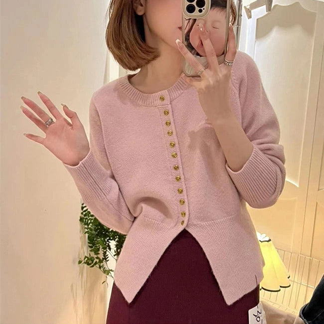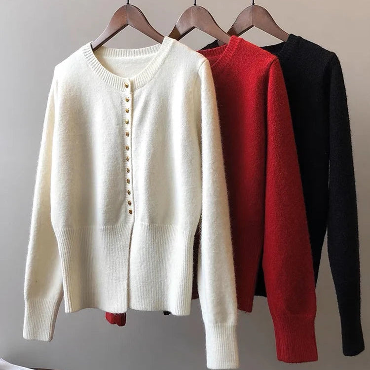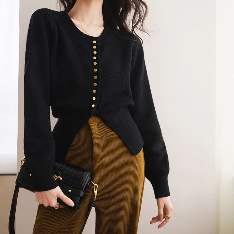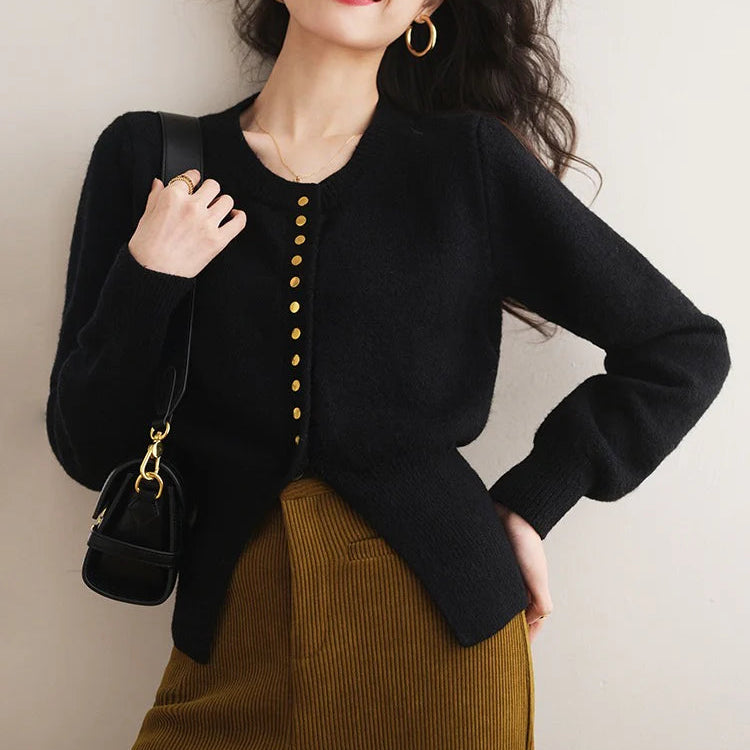 Decolteu in rotund, maneci lungi cu mansete reiate, se inchide cu nasturi in fata. Perfect pentru zilele racoroase!