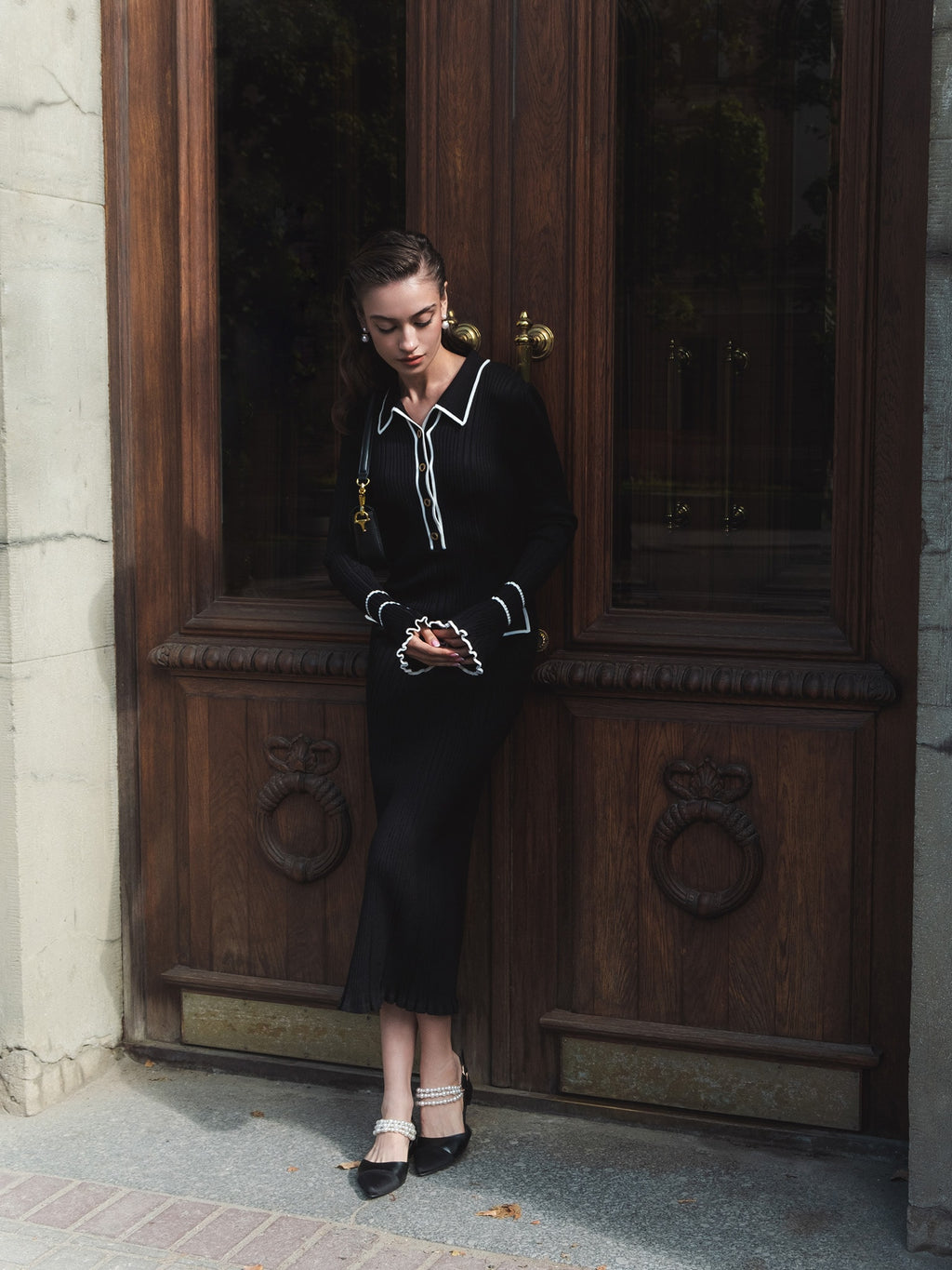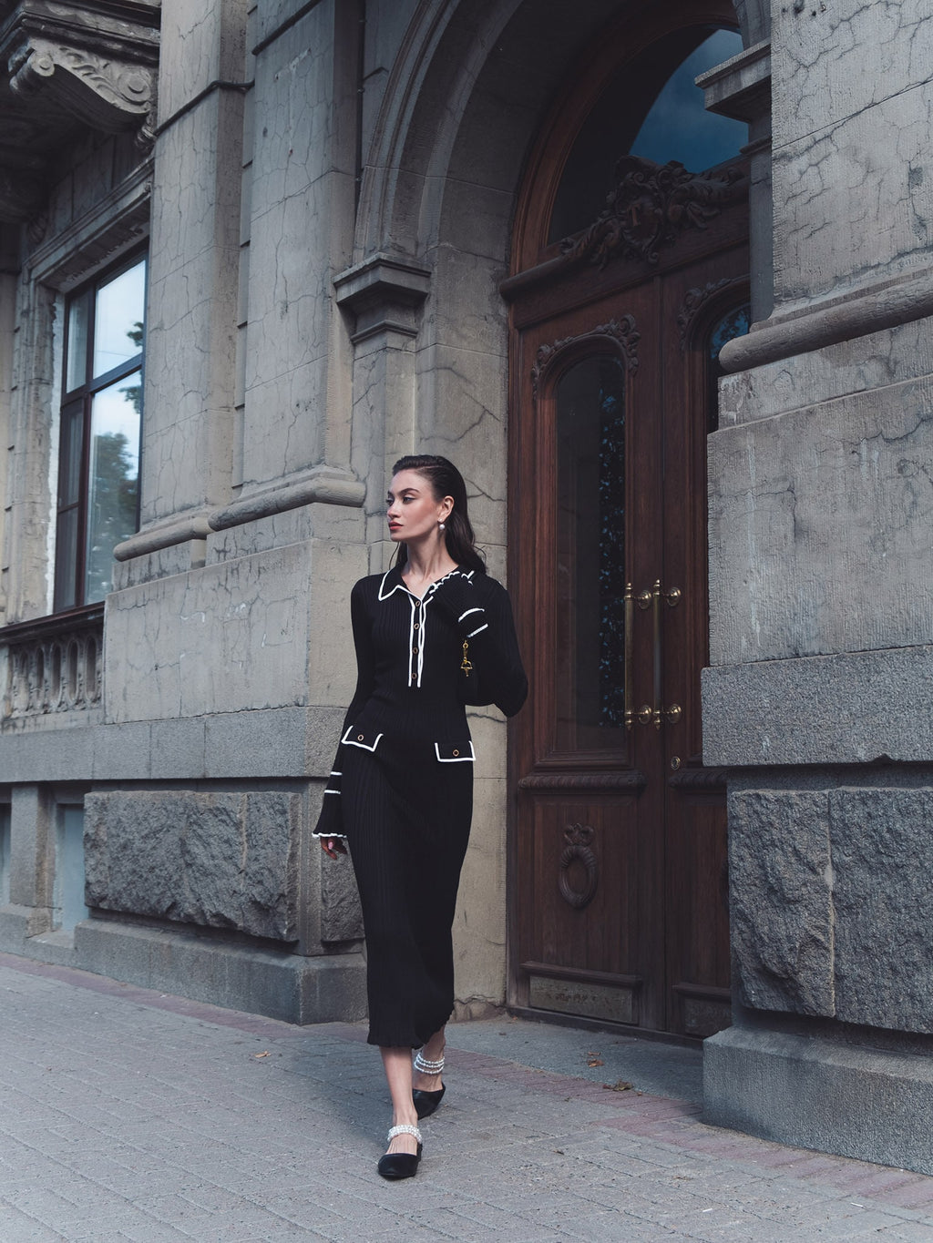 Rochia îmbină eleganța atemporală cu rafinamentul detaliilor moderne. Confecționată dintr-un tricot gros de calitate superioară, redefinind stilul office-chic într-o manieră feminină și luxoasă.
