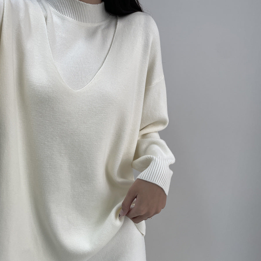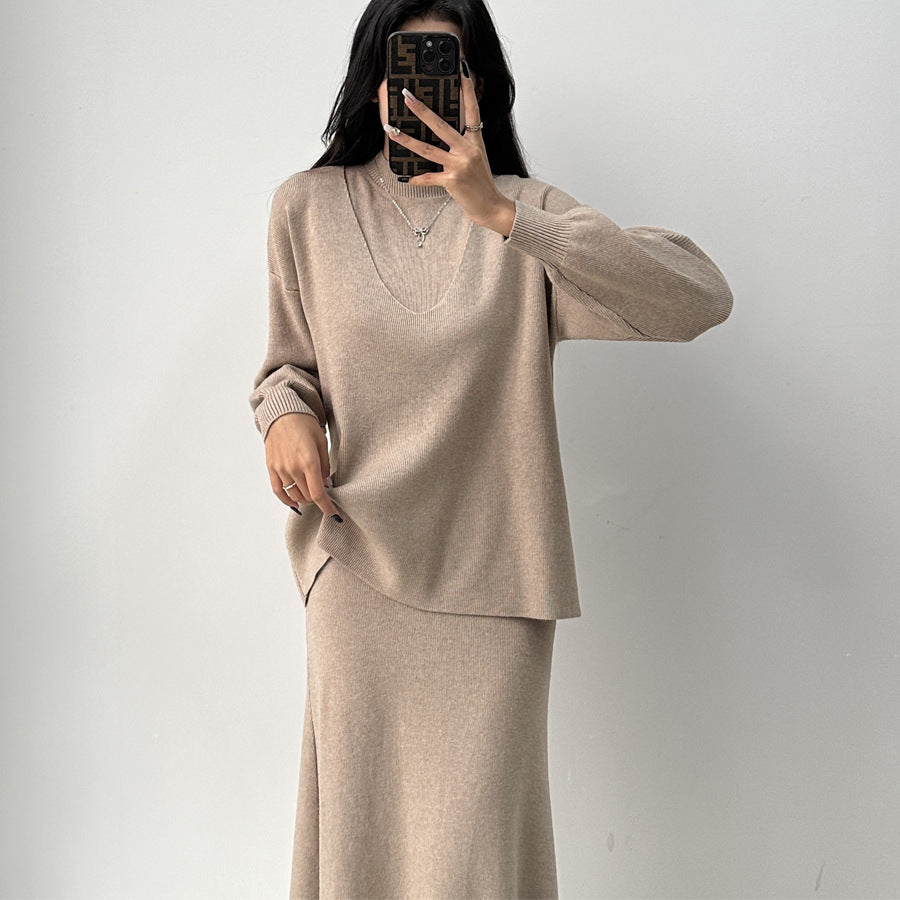 Set dama confectionat din tricot moale, claduros, compus din 2 piese.