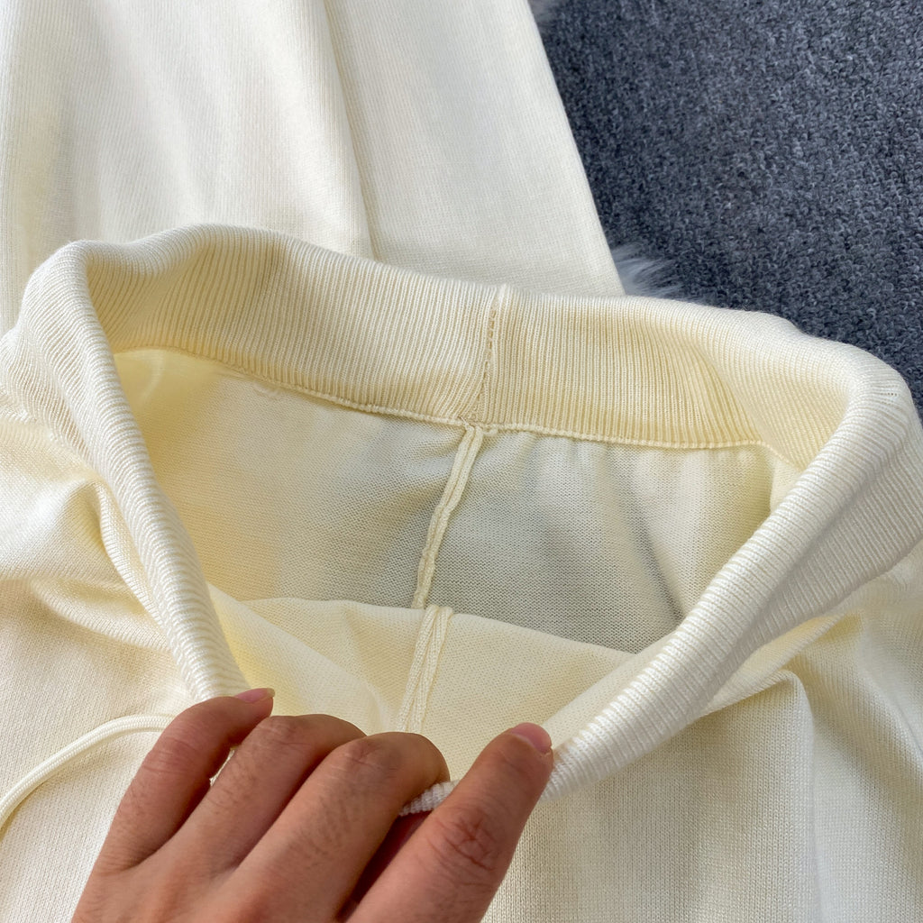 Pantalonii cu croi evazat, banda elastica din material reiat in partea de sus si snur.