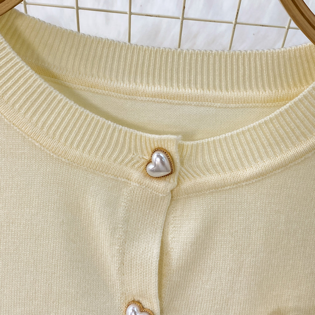 Este compus din jerseu cu croi lejer, maneci lungi, masete late, cu nasturi in forma de inima. Gulerul este rotund cu banda elastica lata, reiata, la baza gatului.