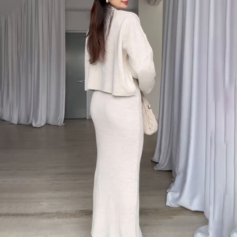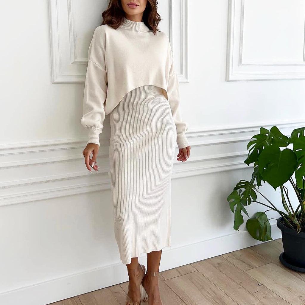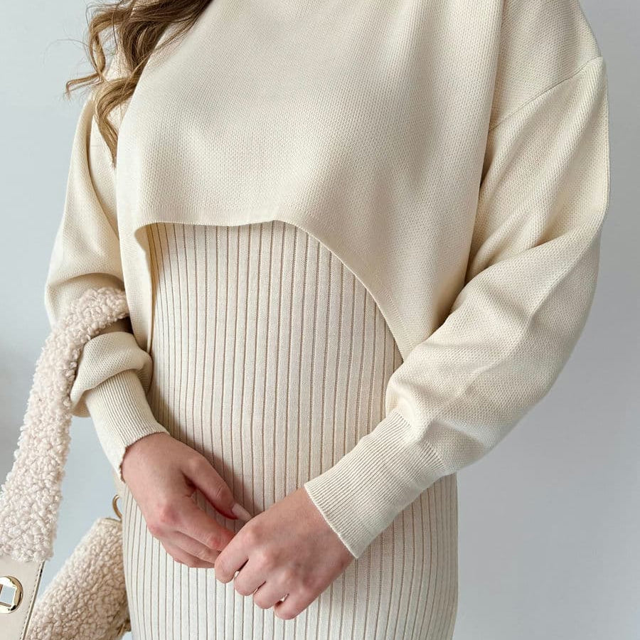 Set dama confectionat din tricot moale, claduros, compus din 2 piese.