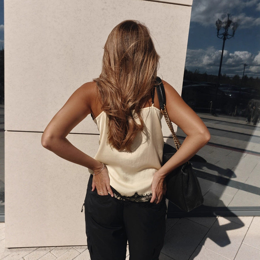 Top Fredda cu bretele reglabile, decolteu adanc in V cu terminatii din dantela.