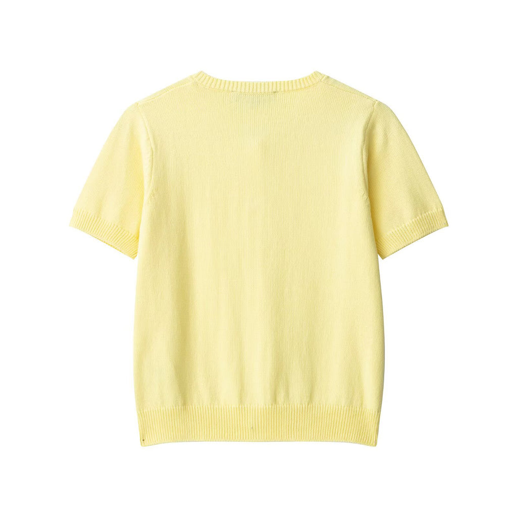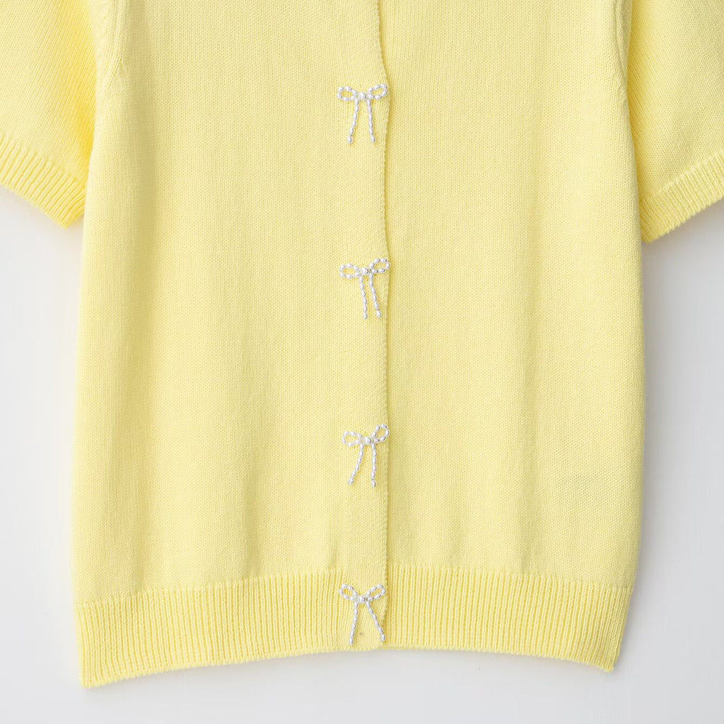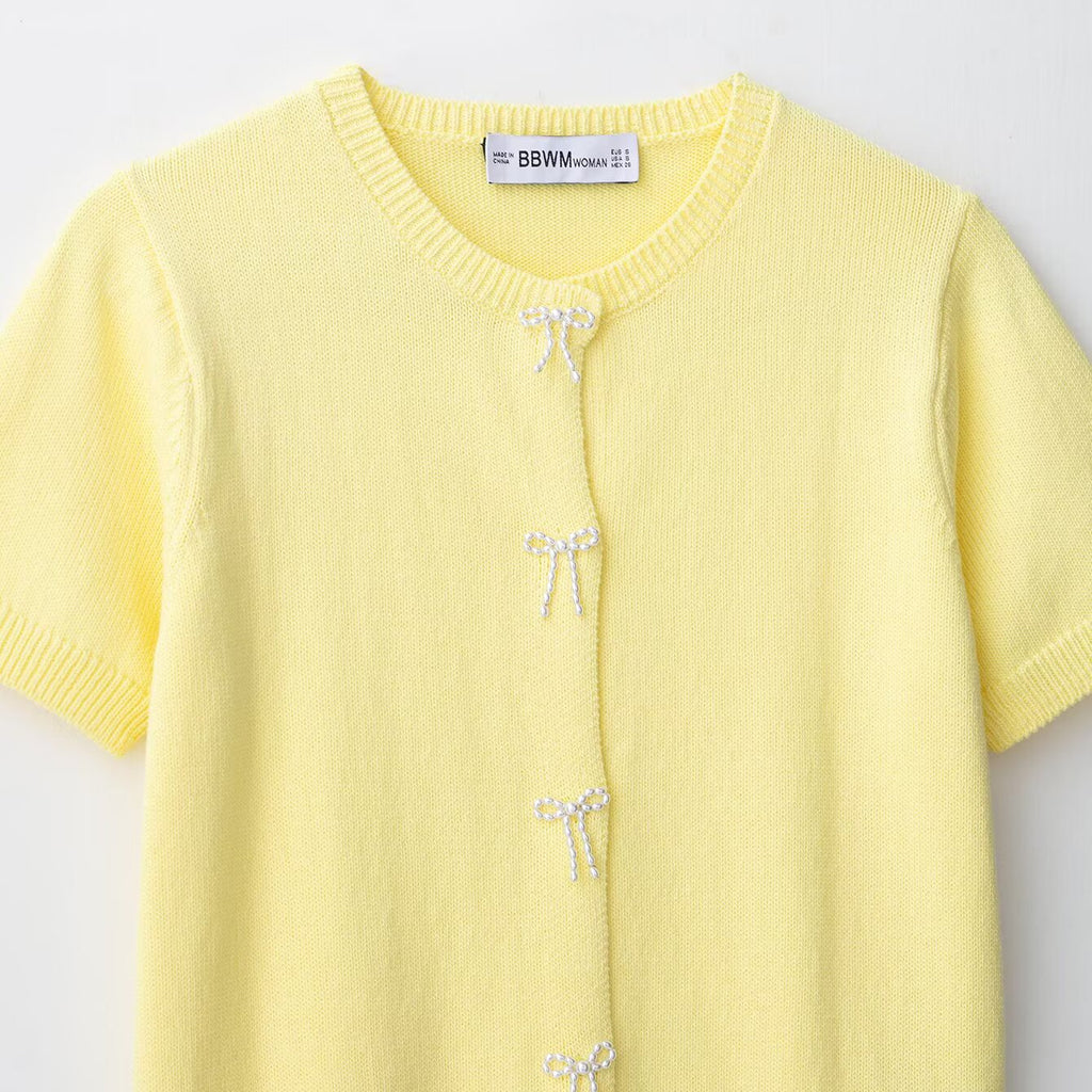 Bluza confectionata din tricot subtire, moale, se remarca prin nasturii tip funda.